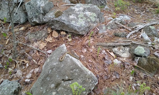 I decided to ride out on my own later this afternoon. The weather had been a bit iffy, looking like it might rain but it didn't so Marie and I headed out. We went up Ledge Hill Rd. and at the corner went straight ahead on a trail that is not really used any longer. I didn't know if we would be able to get through. The blackflies and mosquitoes were absolutely horrible! At times it looked like Marie was wearing a blanket of mosquitoes, UGH! We came to a wet spot on the old trail that I just did not want to try to cross while I was out alone. It was here that I had my exciting wild life sighting.....